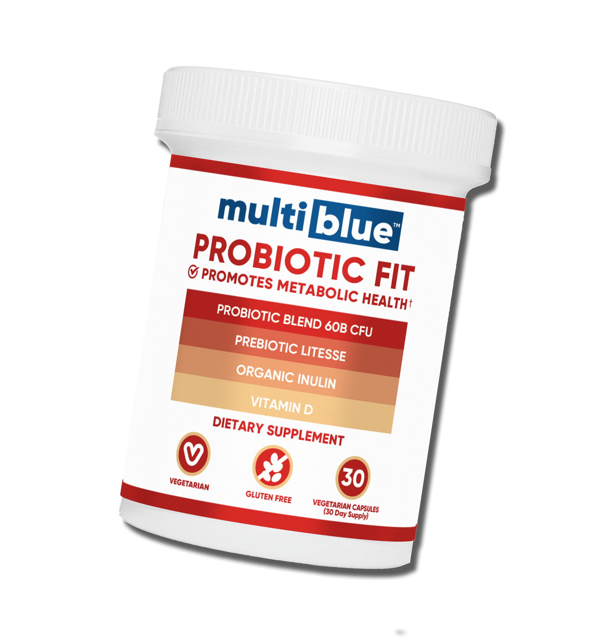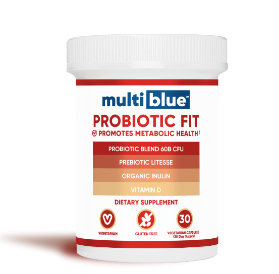 MultiBlue Probiotic Fit is a dietary supplement designed to support gut health, metabolism, weight management, and overall wellness. It combines clinically studied probiotics, prebiotics, green tea extract, and Vitamin D3 for a comprehensive health solution.